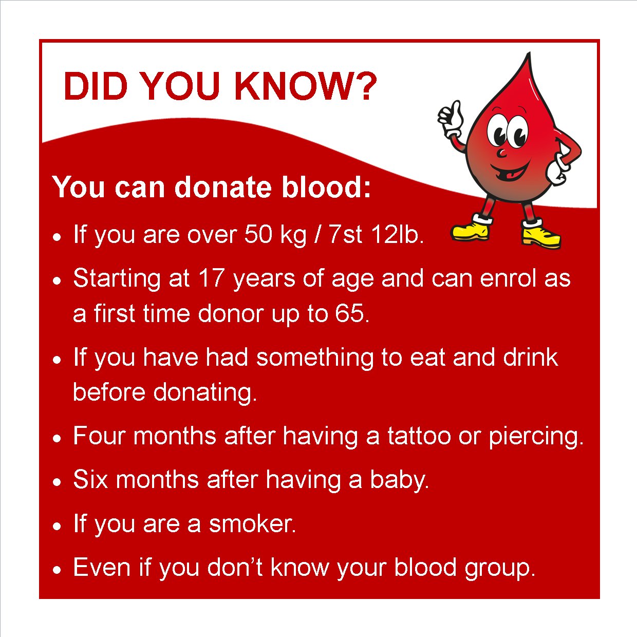 If you are feeling under the weather please wait until you feel better before you give blood.
